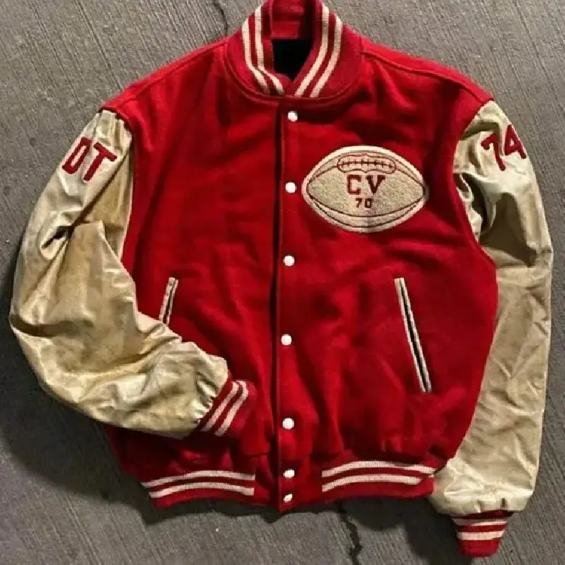 Step into the spirit of the ’70s with the 1970 Champion Wool Varsity Jacket, a timeless tribute to classic collegiate fashion. This jacket combines durable wool with rich leather sleeves for a bold and authentic varsity look. Whether you’re headed to the stadium or embracing old-school style on the street, this varsity jacket is a winning choice.
