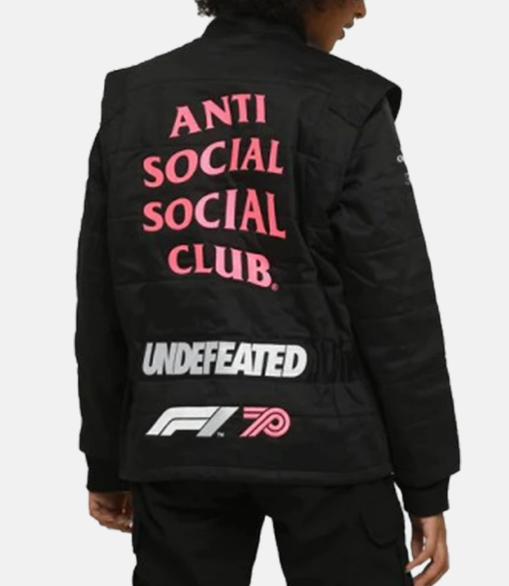 The Shearling Jacket brings this exclusive collaboration to life with its trademark expertise in quality craftsmanship. The durable cotton fabric makes it versatile and practical, while the design highlights the unique synergy of Anti Social Social Club, UNDEFEATED, and Formula 1 aesthetics. Details such as embroidered logos, sleek finishes, and a structured silhouette make this jacket a standout.