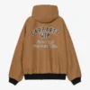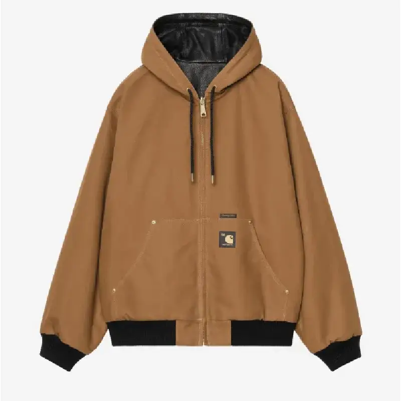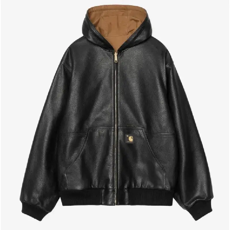 Known for its expertise in crafting durable leatherwear, The Shearling Jacket elevates this piece with expert stitching, functional design, and luxurious texture. The combination of leather and cotton offers both warmth and flexibility, making it a practical yet stylish choice for any season. Every detail, from the adjustable hood and front zip closure to the spacious pockets, reflects Carhartt’s original workwear aesthetic. The supple leather finish adds sophistication, while the soft cotton lining ensures breathability.