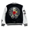 Make a bold entrance with the Chrome Hearts Varsity Jacket, a premium fusion of wool and vegan leather that combines luxury materials with iconic street style. Featuring the classic varsity silhouette with a rebellious edge, this jacket is adorned with Chrome Hearts-inspired patches, intricate embroidery, and a rich color palette that speaks volumes.