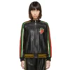 Recreation: GUCCI Strawberry Patch Black Leather Track Bomber Jacket