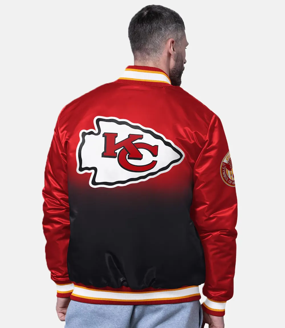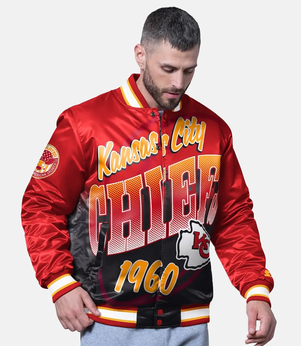 Make a winning entrance wherever you go with the Kansas City Chiefs Starter Red Pass Rush Varsity Jacket — the definition of bold sports fashion. The jacket proudly displays the Chiefs logo on the chest and back, embroidered with precision for an authentic touch. For diehard Chiefs fans, it’s more than a jacket — it’s a symbol of loyalty and power that stands out in every crowd.