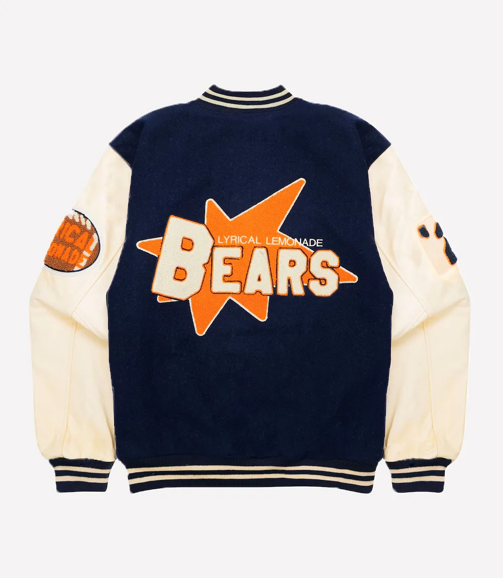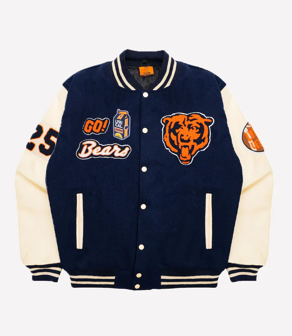 Make a bold entrance with the Lyrical Lemonade x Chicago Bears Letterman Varsity Jacket, a piece that fuses sports energy with streetwear culture. Designed for fans who appreciate hip-hop vibes and NFL spirit, this varsity jacket is the ultimate statement-maker. Bold Chicago Bears patches meet Lyrical Lemonade’s creative flair, resulting in a unique collaboration that turns heads wherever you go.