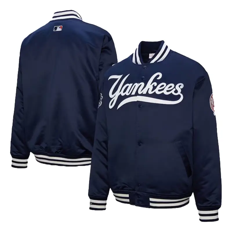 Step back into the golden era of baseball with the New York Yankees 2000 World Series Navy Varsity Jacket, a nostalgic tribute to one of the most iconic championship wins in MLB history. Designed with vintage flair and modern construction, this jacket is a bold statement piece for true Yankees fans and varsity jacket lovers alike. Emblazoned with the official Yankees logo and commemorative World Series detailing, it delivers a powerful nostalgic vibe for collectors and fans.