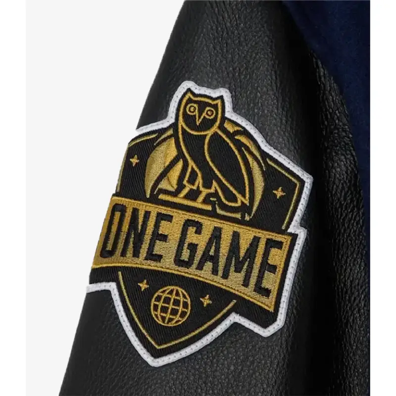 Made from high-quality wool and leather, The Shearling Jacket guarantees a perfect blend of warmth, texture, and style. The wool body provides insulation and breathability, while the smooth leather sleeves add a refined, durable finish. The ribbed trims, snap-button front, and embroidered detailing maintain the authentic varsity aesthetic. Every element—from the OVO owl logo to the Thunder insignia—speaks of exclusivity and sophistication.