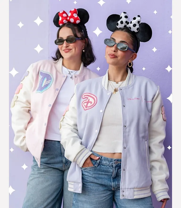 Bring a sprinkle of magic and nostalgia to your wardrobe with the Stoney Clover Lane Disneyland Varsity Jacket. Designed for dreamers, Disney lovers, and those who appreciate timeless varsity style, this jacket combines playful charm with vintage-inspired fashion. It features enchanting Disney-themed patches, making it the perfect outerwear piece to express your inner child in the most stylish way possible.